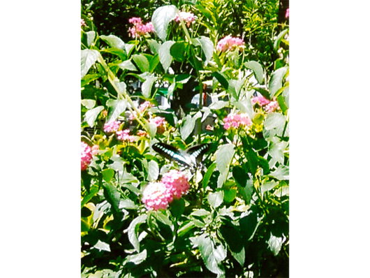ベランダから運んだ一鉢のこでまりが3年目。大きく逞ましく成長し今年は美しい大型ちょうちょが賞賛の舞を見せに来てくれました。