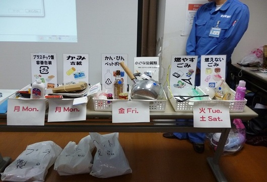 イベントでは、ごみの分別や出し方等ごみの処理方法やリサイクルの仕組みなどを翻訳しながら、映像や実物を利用して説明するほか、クイズ形式を取り入れることによりコミュニケーションを図り、交流を深めました。当団地がある横浜市では10分別15品目の分別ルールが定められていますが、翻訳しながら具体的な例を交え、粗大ごみも含めてわかりやすく解説したほか、分別の必要性、リサイクルの仕組みや大切さ、リサイクルされて生まれ変わった製品の使用例など、初歩からかなり踏み込んだ話まで多岐にわたる内容となりました。