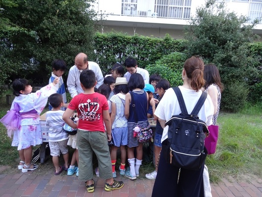 兵庫県西宮市にある今津浜パークタウンにて自治会主催の夏祭りと連携し、「国旗当てゲーム」「けん玉体験」を開催しました。