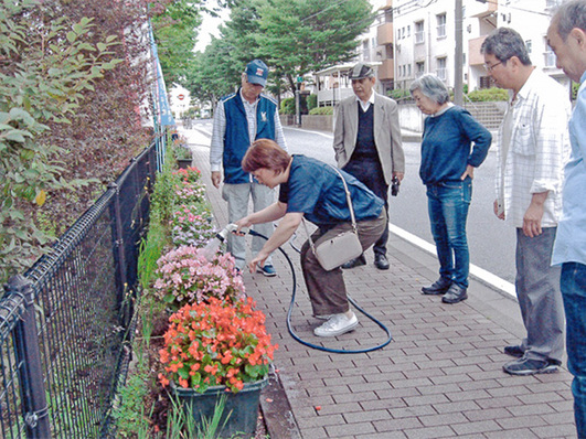 水やりの時、土が歩道に流れてしまうので、土の流れをストップさせました。あまり高くすると柵になってしまうので低い柵にしました。