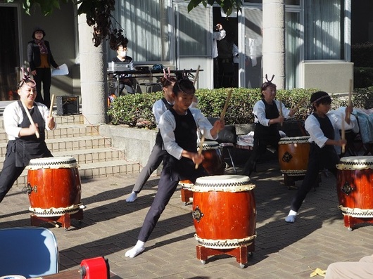 地域で活動されている『英太鼓』の皆さまです。 和太鼓の音色が聞こえてイベント会場に足を運んで下さった方も多数いらっしゃいました。