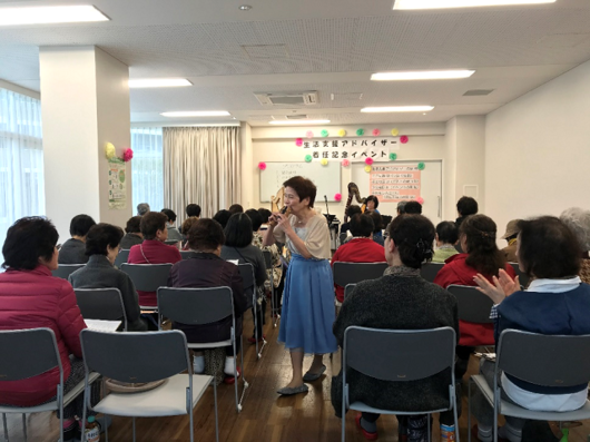 アーベインルネス若久団地は、4年前に建て替えが行われた団地で、地域医療福祉拠点化の取り組みを行っています。その一環として、令和元年10月より、高齢者の方の各種相談対応や電話による安否確認、イベント等の開催を行う生活支援アドバイザーが配置されました。今回のイベントは、着任した生活支援アドバイザーのご紹介や業務内容のご案内のほか、地域包括支援センターからの健康講話、ハープとコカリナの演奏会などを行いました。