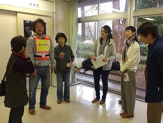 当日は、集会所内に立っている認知症役の方へ声掛けを行い、あいさつや会話を行いながら安全なところまで誘導を行う訓練をしました。