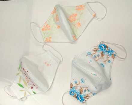 不織布マスクは暑いと感じられ、木綿で夏用マスクを作られました。その日の服装に合わせてマスクを変えて、おしゃれを楽しまれています。