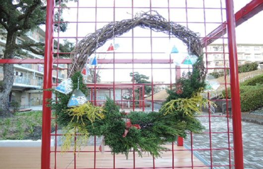 今回のイベントでは、団地内に設置されたマルチフレームに、クリスマスリースやイルミネーションを飾り付け、巨大リースに参加されたお客様の願い事を飾りました。飾り付けだけでなく、クイズポイントをまわっていただくクイズラリーも行い、全問正解した方にはサンタさんからお菓子をプレゼントしました。