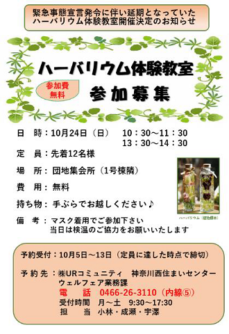 10月24日(日曜)、神奈川県大和市のコンフォール鶴間ライラック通り団地で「ハーバリウム体験教室」を開催しました!