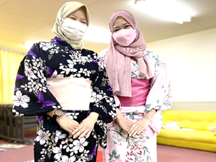 日本人居住者の皆さまが外国人居住者の浴衣の着付けを手伝い、外国人の皆さまがお茶を点てて、世代や国籍関係なく屋外でのお茶の時間を楽しみました。