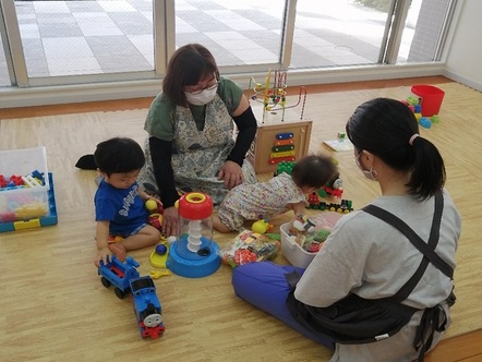 今回はUR子育てサポーターイベントとして整体ヨガ“コルボー”橘先生に講師を依頼し、子育て中の方も続けられそうな身体をほぐす方法を教えていただき、3団地で計22組の親子にご参加いただきました。保護者の方が整体ヨガをしている間は、お子さまたちはすぐ近くで、見守り保育スタッフとおもちゃで遊びました。