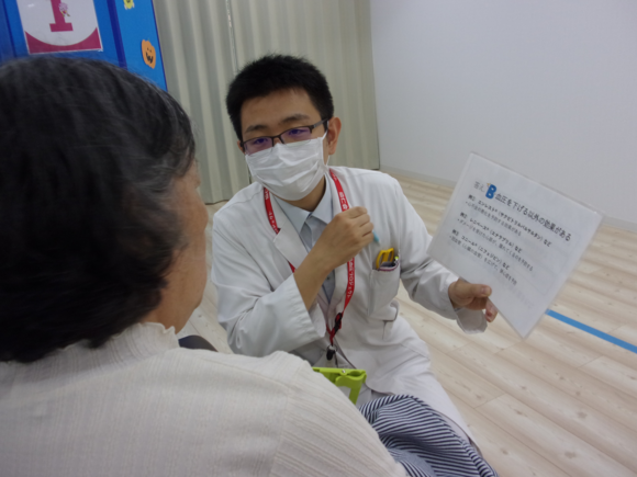 理学療法士による「プラス テン」。簡単な運動を教わっています