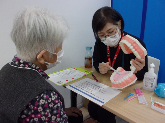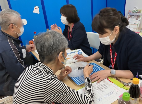 イベントでは、両側の上腕と足首の血圧を測定することで動脈硬化を調べる血圧脈波検査やAIを使った歩行・口腔機能の測定ができる健康測定コーナー、減塩体験コーナー、薬剤師や歯科衛生士などの専門家に健康上の不安を個別に相談したりアドバイスを受けたりできるコーナーなどを設け、盛りだくさんの内容でした。