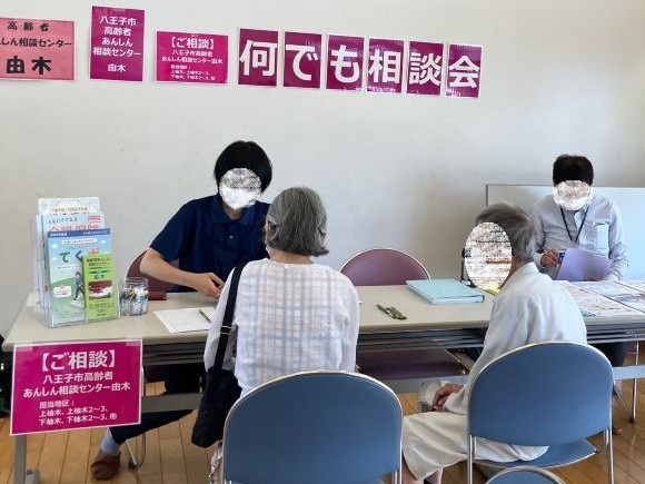 南大沢保健福祉センターによる血圧、握力、塩分チェックなどの“からだチェック”後、それぞれの結果の説明を聞き、測定のあとにURコミュニティはUR賃貸住宅の制度相談や見守りサービスのご案内、八王子市地域包括支援センターは福祉制度や介護保険制度などの相談会を行い、皆さま様々な相談をされました。