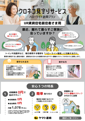 地域医療福祉拠点化に取り組んでいるUR 賃貸住宅を中心に、高齢者の方が安心して暮らし続けられるよう、きめ細やかなサービスをお届けする「くらしつながるサポーター」(旧:生活支援アドバイザー)を配置しています。日常生活におけるご相談、安否確認、地域との連携、交流促進のためのイベント等を実施しています。